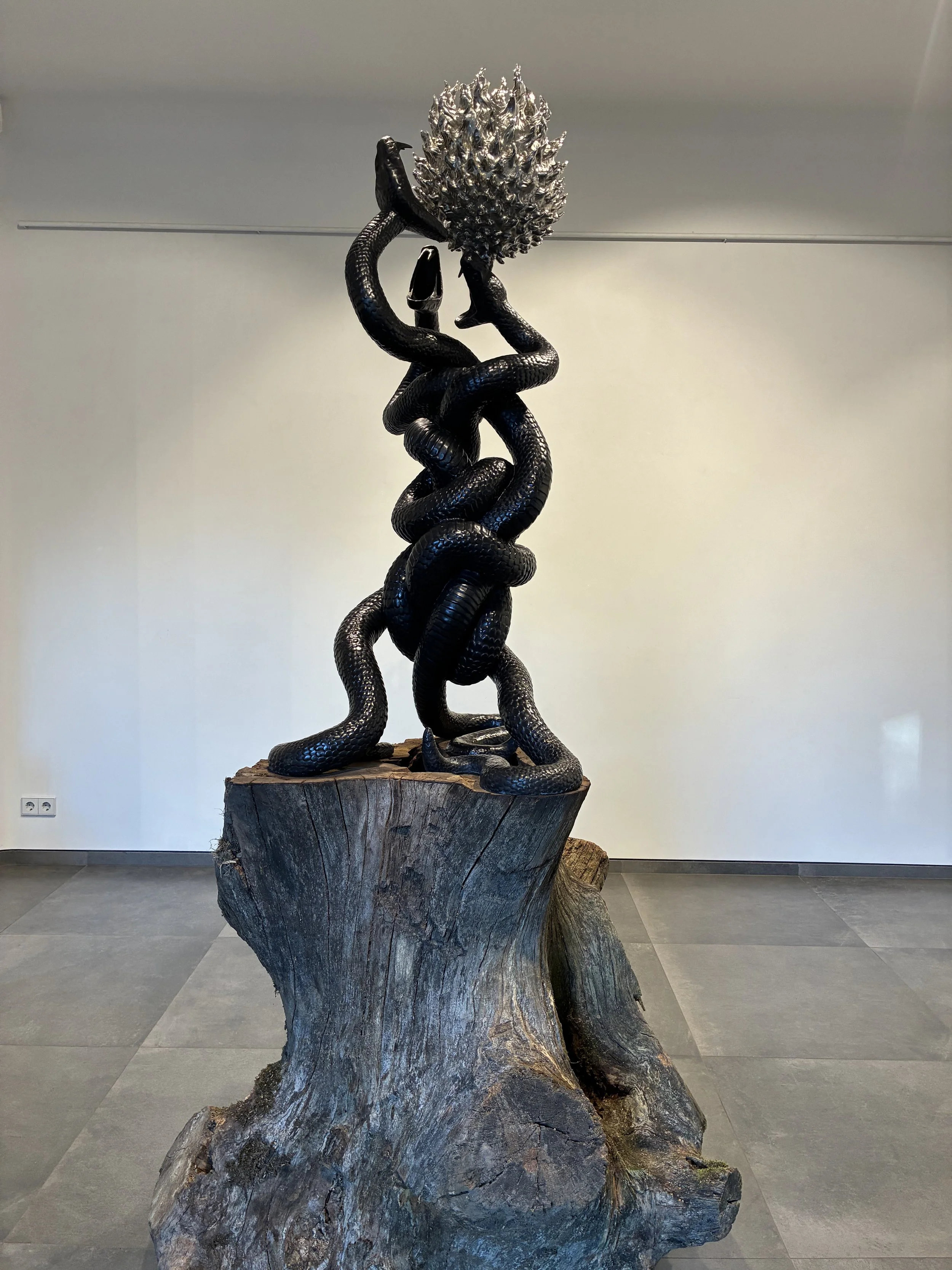 From 9 October to 9 November this year, Aigars Bikše’s solo exhibition “Historical memories of the present” is on display at Art gallery DAUGAVA in Ausekļa iela 1, Rīga, Latvia. The works created for the exhibition were made between 2020 and October 2025 and are made of oak wood, bronze and stainless steel.